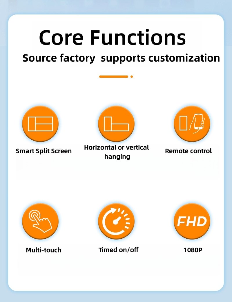 | Other functions | playback function | Auto play upon startup; The display screen automatically plays multimedia content according to the predetermined startup working time, and displays relevant graphic and textual information according to the preset screen template. The supported playback methods include: 1)Mixing, video, music, images, e-books 2)Timed on/off time playback 3)Loop playback |